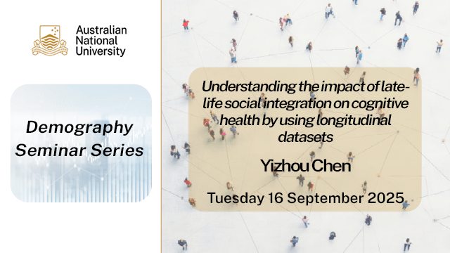 Yizhou Chen is a first-year PhD student at the School of Demography, supported by ANU–CSC scholarship. The first stage of his PhD project, Education Shapes Episodic Memory Measurement via Test Specifications, has been published in Social Science & Medicine. His preliminary work on the U.S. population is currently under peer review.